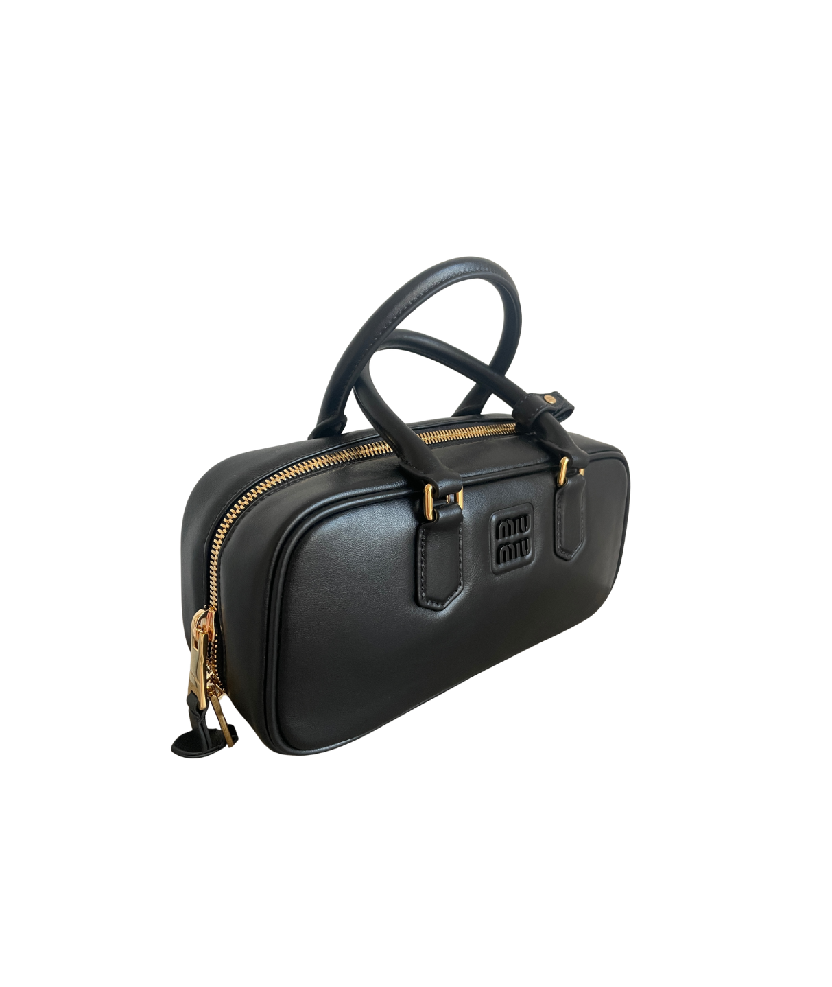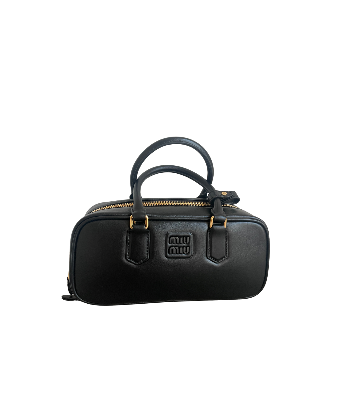 Iconica borsa Miu Miu Arcadie in pelle di colore nero.
